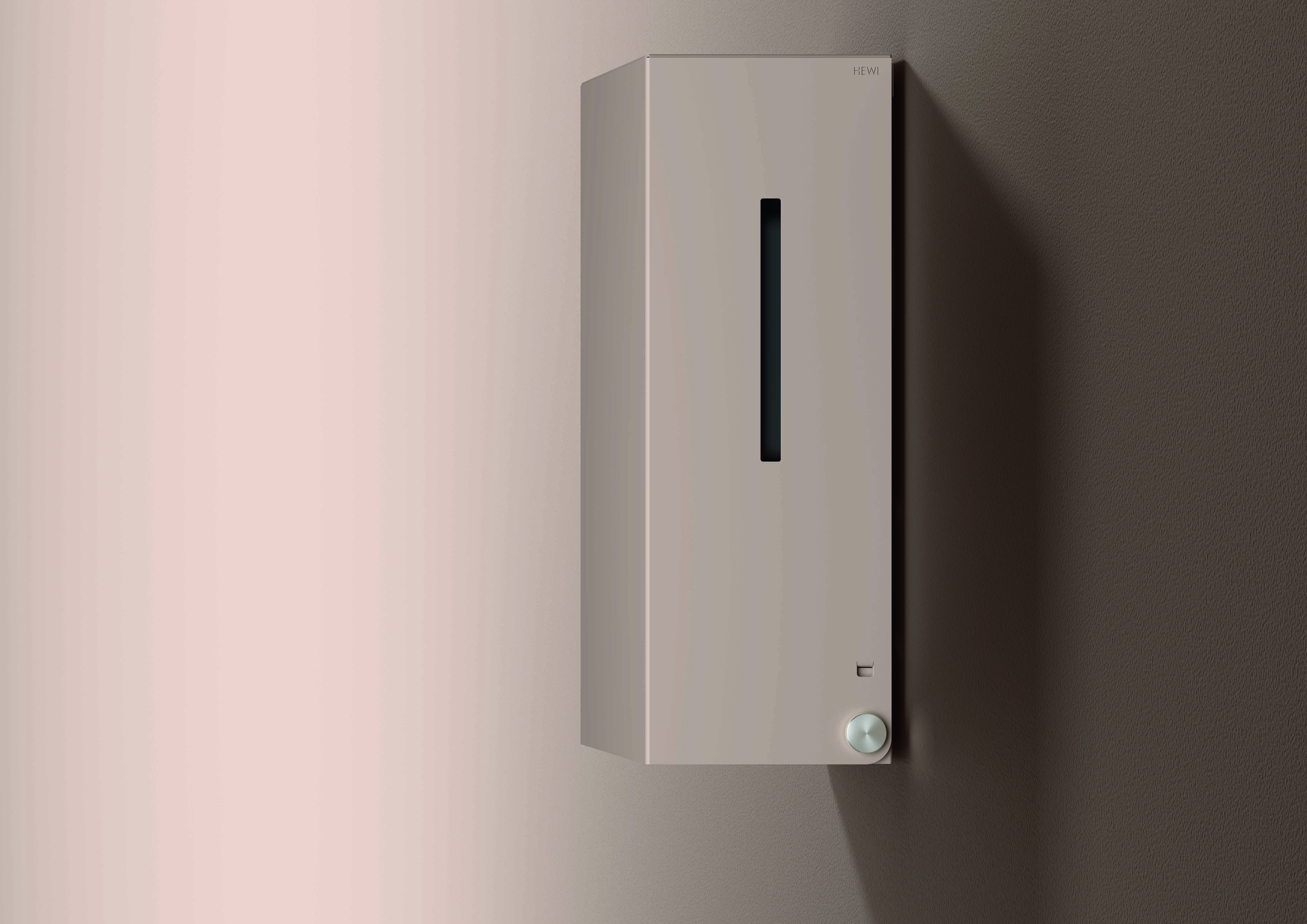 HEWI bietet mit den Spendern von System 900 Gestaltungsoptionen und ermöglicht eine ästhetische Umsetzung der Hygienemaßnahmen in Eingangsbereichen und Lobbys, auf Tischen, vor Aufzügen oder wo immer sie gebraucht werden. Die HEWI Designlinie ist in Edelstahl mit matter Oberfläche in Weiß, Grautönen oder Schwarz und ganz neu in individueller Wunschfarbe verfügbar. Kombinieren lässt sich der neue Desinfektionsspender mit weiteren Sanitärlösungen von HEWI. Erhältlich sind Seifen- und Papierhandtuchspender sowie Abfallbehälter in der jeweiligen Designsprache.