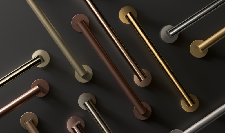Seit 2024 verfügt HEWI am Unternehmensstandort Bad Arolsen über eine eigene, hochmoderne PVD-Anlage um höchste Qualität und Präzision bei der Oberflächenveredelung zu gewährleisten. Die metallischen Oberflächen – Messing, Bronze, Kipfer, Nickel, Gold oder Schwarzchrom, wahlweise gebürstet oder glänzend – stehen für ausgewählte Produkte der HEWI Serien und Systeme S 900, S 900 Q, S 480 sowie S 162 zur Verfügung.