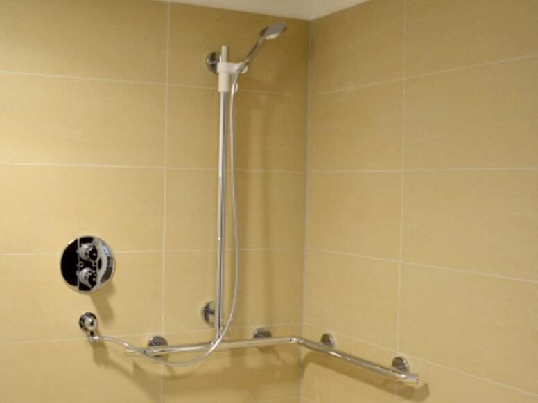 Not only has the building's equipment been invested in, but also in the quality of life offered by the high-quality ambience. In the bathrooms, for example, holding and support folding handles were installed to give the residents security and support them in their independence. WARM TOUCH was chosen as the material - these are polyamide products that are chrome-optically coated. They have the appearance of high-gloss chrome. In contrast to products with a metal surface, the holding and support handles have a warm surface, so that they are also pleasant to hold for people with increased sensitivity to cold, such as rheumatism patients.