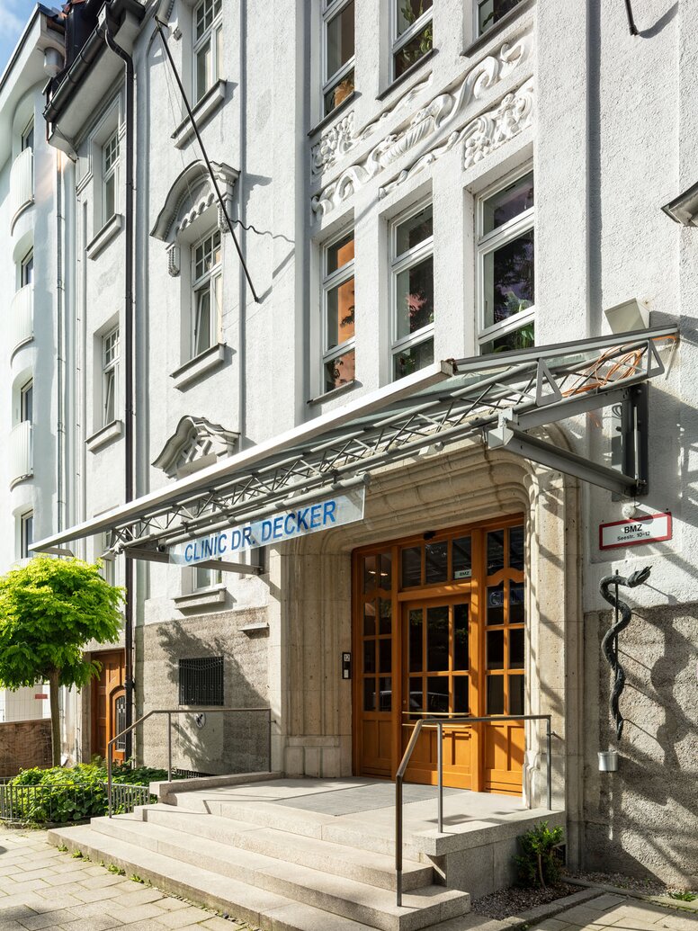 The Clinic Dr. Decker is located in a listed art nouveau villa in the heart of the city district in the immediate vicinity of the English Garden. With its founding year in 1896, the clinic looks back on a history of over 120 years and is now managed by the fourth generation in the family tradition.
