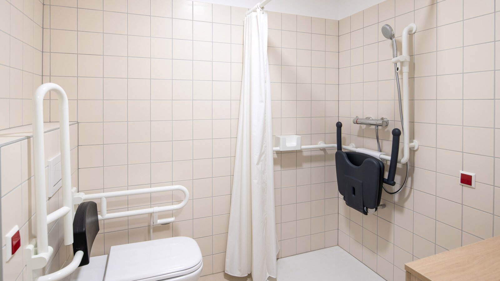 In the shower there is a solution from the professional care system with suspended seats from the LifeSystem from HEWI. The system can be used independently of physical requirements. Products that can be used flexibly promote the independence of users.