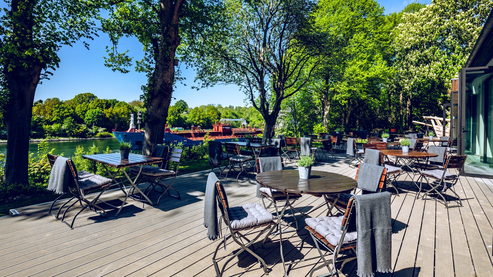 The restaurant, which is well-known in the region and is located directly on the Kiel Canal, has been a popular venue for day trips for decades and many festivities have been celebrated in its large hall. Then, in 2001, it was suddenly over - until Dr Marc Weinstock decided to revitalise the building in Kiel's Suchsdorf district. For Weinstock, Managing Director of DSK-BIG and himself a resident of Suchsdorf, the project is something close to his heart. After all, with DSK-BIG, one of Germany's major urban developers, he usually works on a completely different scale. Nevertheless, the project and area developer decided to extensively renovate and convert the historic Margaretental pub and ultimately to run it himself. "This is where tradition meets modernity. Outside it looks like it used to and inside it has a contemporary feel," says Dr Weinstock at the opening. The restaurant's manager, Anja Schütz adds: "The location is almost perfect for a restaurant that attracts tourists: Sitting on the terrace, you can see the bulky cargo ships passing through the Kiel Canal."