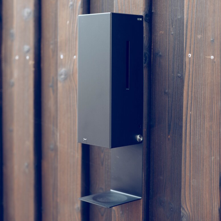 The durable and robust accessories from HEWI System 900 were also chosen to match the black matt HEWI door fittings, as well as the black washbasin fittings and dark surfaces in the new washrooms: HEWI Sensoric soap dispensers, paper towel dispensers, waste bins and toilet brush sets are used, all of which are made of high-quality stainless steel and powder-coated in elegant deep matt black. System 900 meets the requirements of a wide range of building types, especially in highly frequented locations such as public buildings and restaurants, and impresses with its functionality, durable quality, clever installation technology and hygienic design. The folding support rail in the WC is also from the 900 series, which was essentially developed for accessible bathrooms and offers an impressive combination of reliable quality and sophisticated technical details.