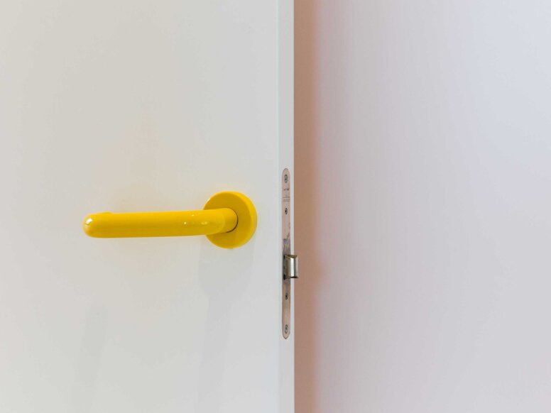 Using the colourful 111 door handle, the designer of the show house, Christine Leja, literally invites guests to come in and experience the rooms. The handle adds a stylish accent to the door, which boosts the atmosphere in the room in a positive and cheerful way. The colours are repeated in various places throughout the rest of the interior, creating exciting contrasts with other furnishings.
