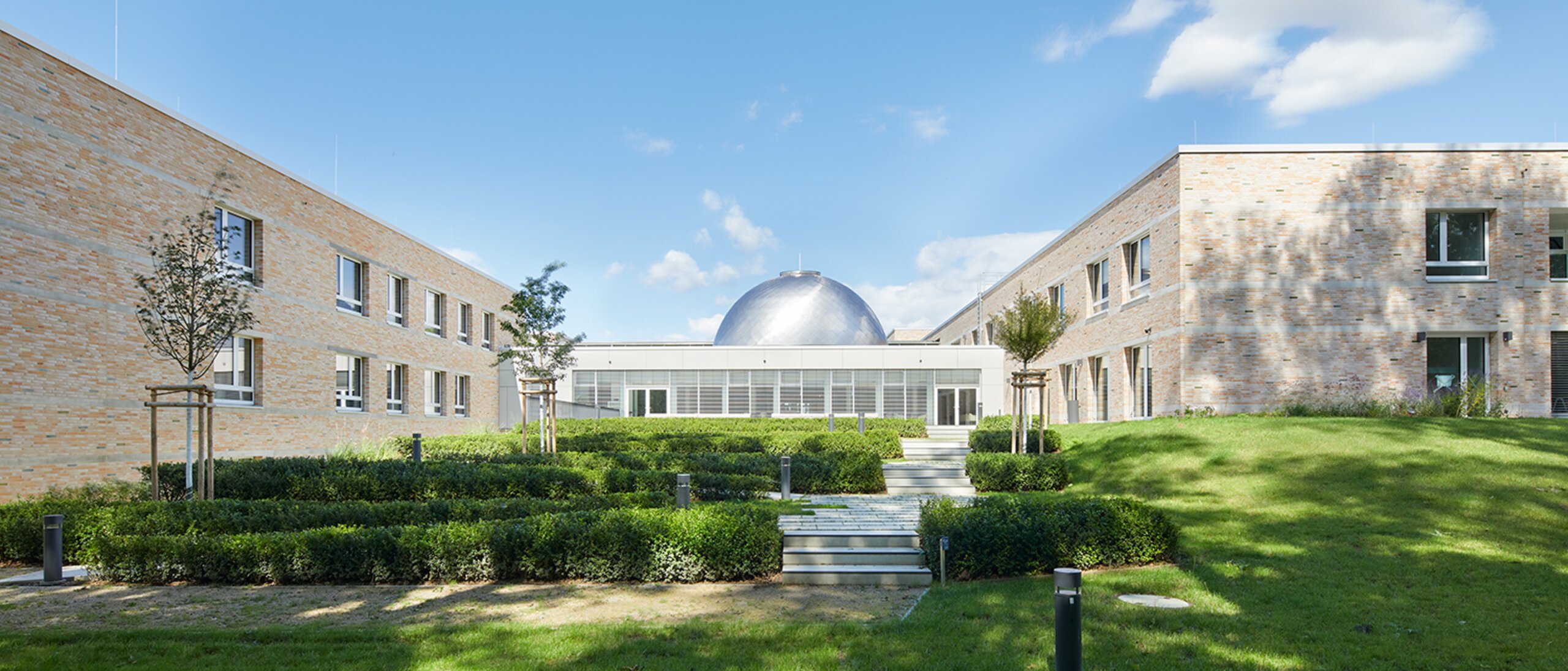 The Krankenhaus für die Seele sees itself as a living space that offers its guests individualised therapy and leisure activities for a period of time, while at the same time meeting their needs for retreat and socialising. Conceptually, this leitmotif is expressed in the division of the new building into five cubes, which are arranged around a central courtyard and are thus reminiscent of a village-like structure with a market square.