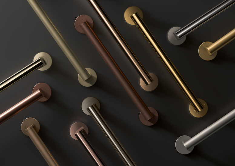One example of a high-quality design solution is the System 162 from HEWI. This impresses with a straightforward design language and a clearly defined choice of materials. The precise mitre cut, which creates an elegant look, is particularly characteristic. The system is available in a high-quality chrome-plated version, in matt polished stainless steel, with PVD surfaces or powder-coated. Inserts made of satinised glass or high-quality polyamide are also available to round off the design;