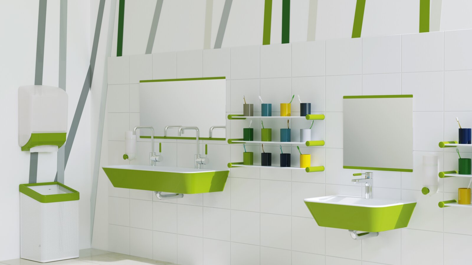There is a great need to catch up in terms of hygiene, especially in kindergartens and schools. Especially in the washing areas with high hygienic requirements important inventory is missing.