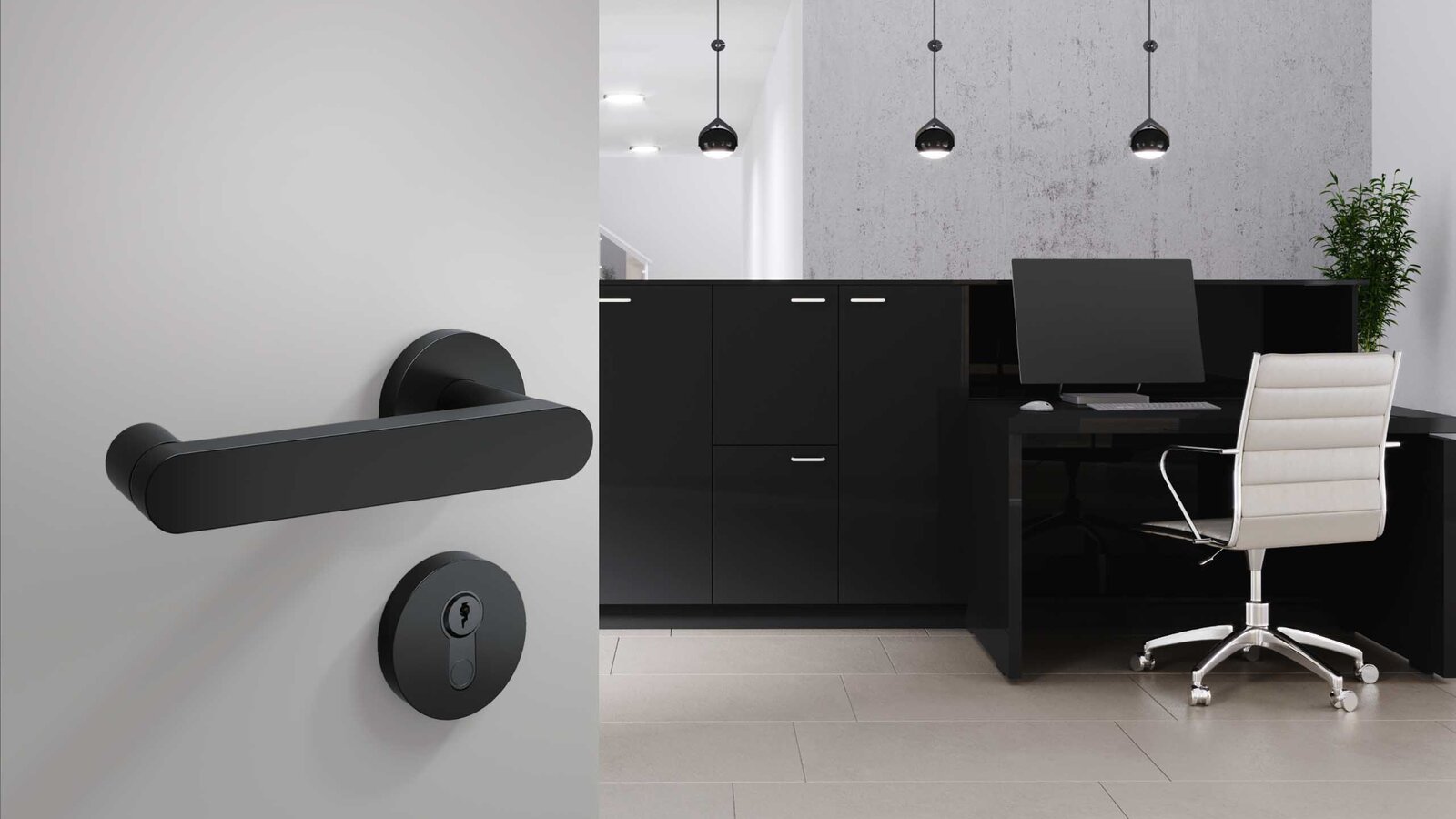 Series 270 is a fully comprehensive project range in accordance with DIN EN 1906 and DIN 18255. It is complemented by fittings for fire doors and escape routes, frame door handles as well as window handles, which allow for a fully comprehensive project furnishing. All models are designed in the proven H-technology for high-traffic commercial doors. The mounting technology fulfils the requirements of user category 4 according to DIN 1906 and is suitable for both the private sector and for heavily frequented office and commercial buildings. The solutions are available in matt black, satin stainless steel and up to 4,500 other powder colours. Clear edges and geometric lines characterise the purist design and are reminiscent of Tehrani's architecture in terms of form. The all-round edge also underlines the high precision and value.