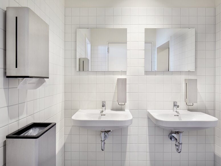 The paper towel dispensers, wastepaper bin and soap dispensers in the 805 range also have integrated fill level indicators, which make it easier to stock consumables such as soap or paper towels. Sophisticated details such as lockable dispensers or concealed fixings protect against theft and vandalism.