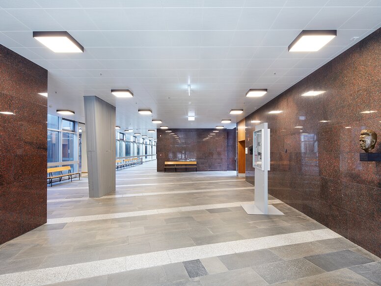 In the listed foyer of the auditoriums, the radiant ceiling heating was rebuilt according to the original design.