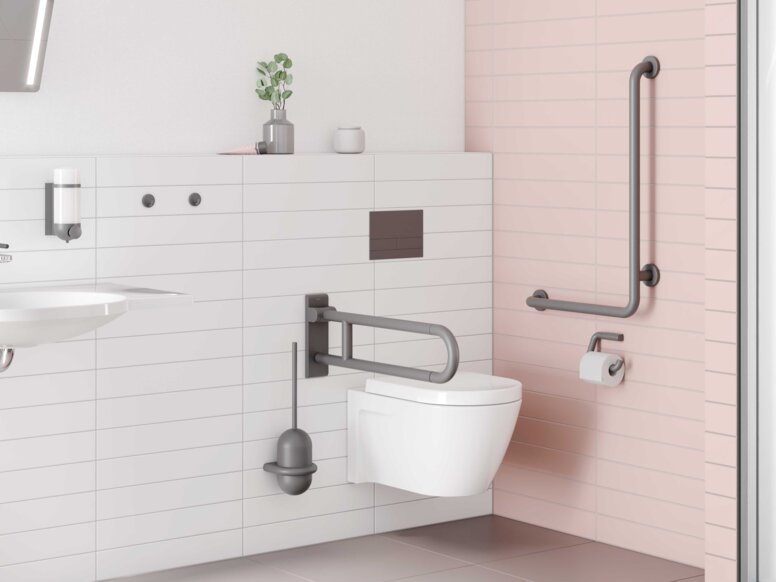 Folding support rails make it easier to stand up and sit down if strength and mobility are limited. Wheelchair users like to use a folding support handle to move from the wheelchair to the toilet and vice versa. A secure hold is essential in the bathroom. This applies not only to barrier-free bathrooms, but also to bathrooms for the elderly or care bathrooms, for example.