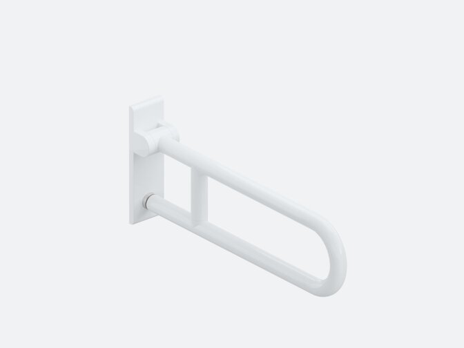 • Folding support handle Duo: This also has a round lower rail that provides optimum support for turning sideways onto the toilet