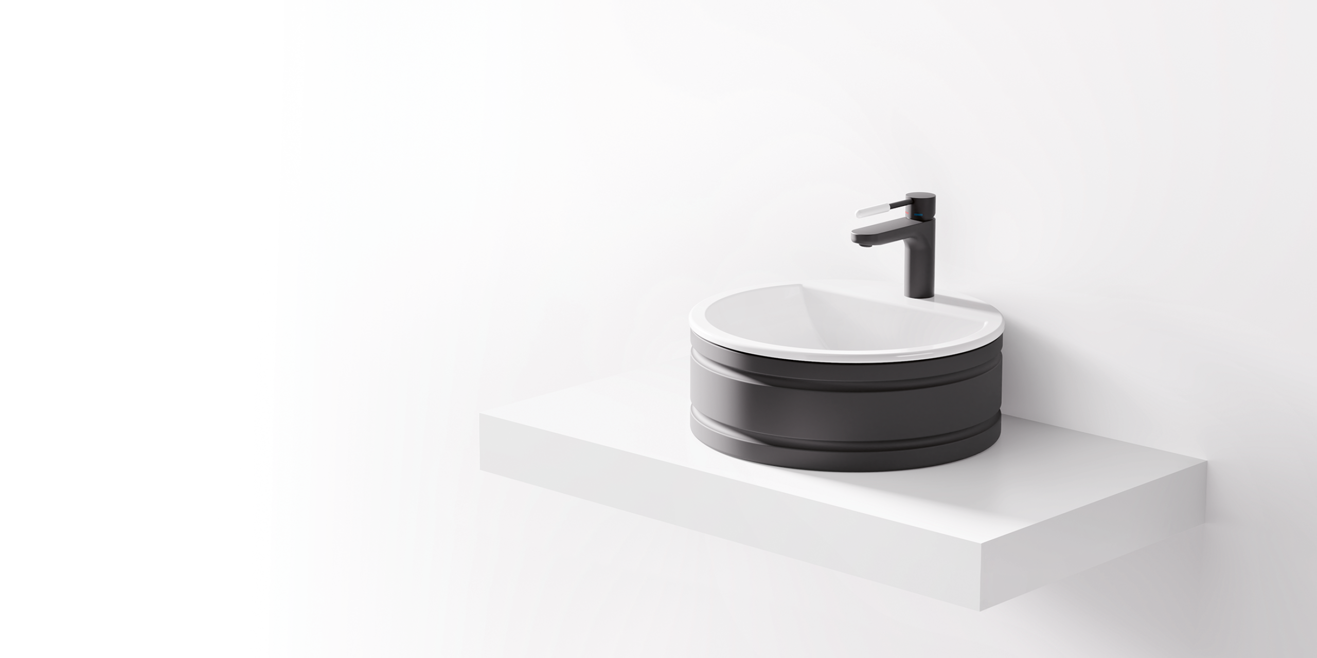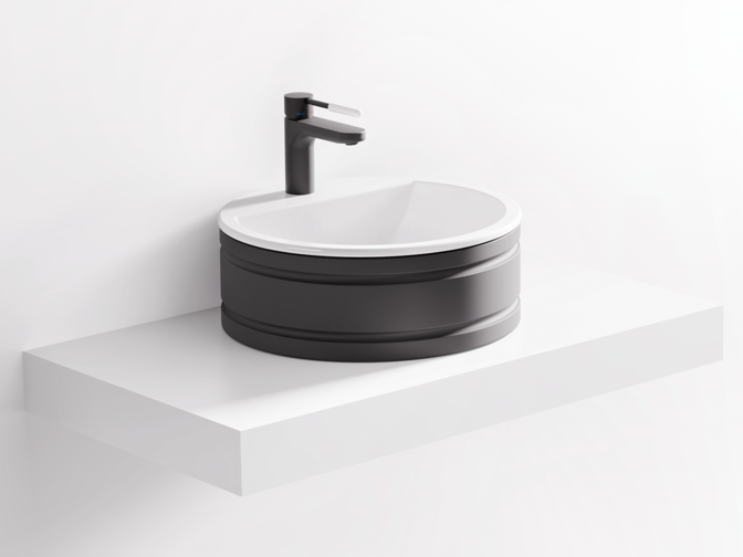 The innovative washbasin concept allows an adaptive support rail and a modular storage system to be integrated directly into the washbasin. It is available in three attractive powder-coated colours that blend harmoniously into different bathroom designs. The high-quality powder coating gives the washbasin an elegant look, makes the surface particularly resistant and ensures a comfortable grip on the support rail.