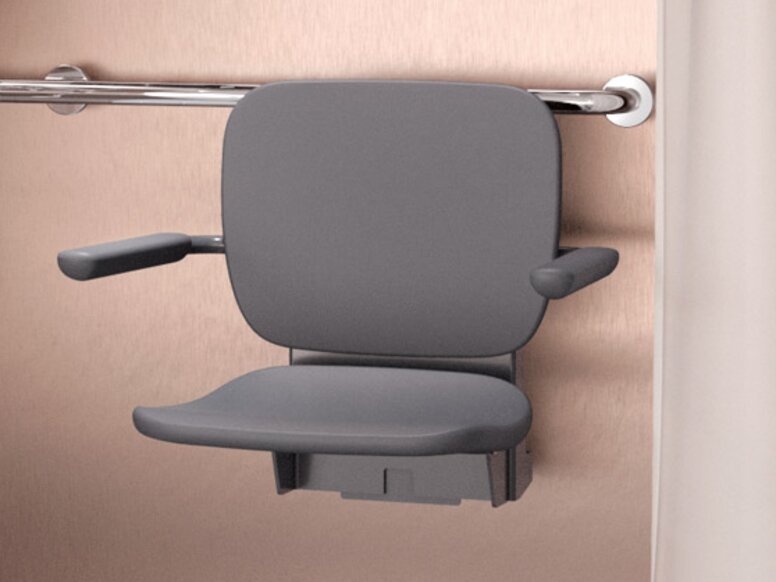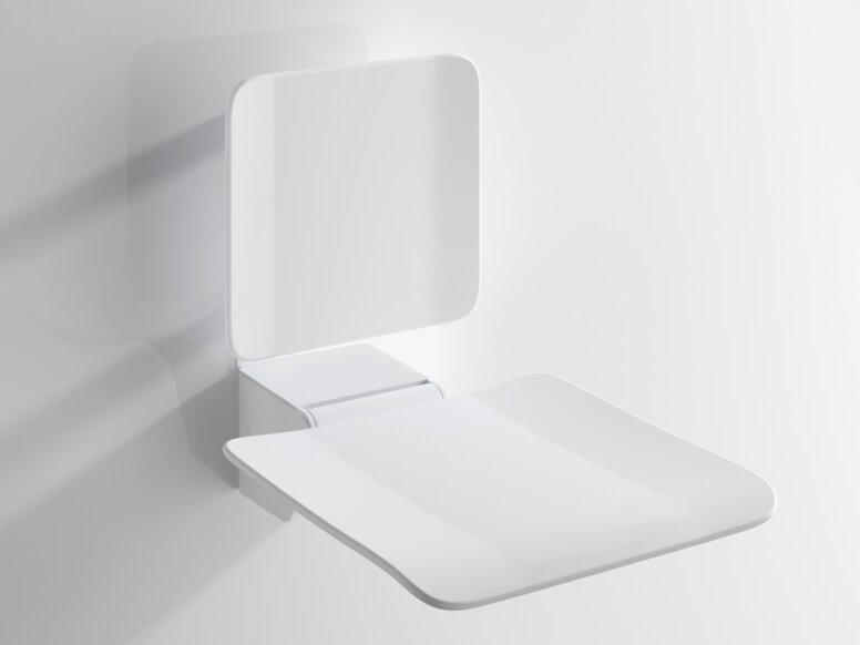 Permanent geïnstalleerde douchezitjes hebben een opklapbare zitting. Als de douchestoel niet nodig is, kan er in een handomdraai meer ruimte in de douche worden gecreëerd.
